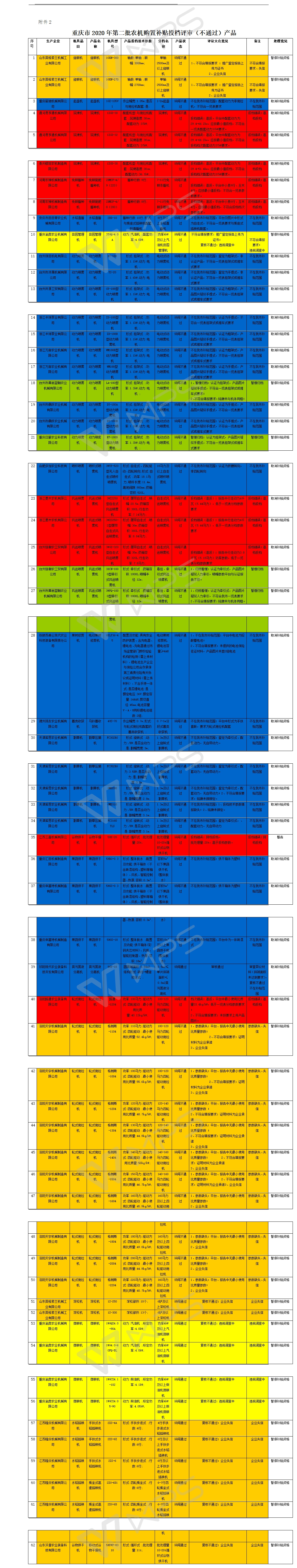 一、因企業失信,暫停產品補貼資格。洛陽天宇機械制造有限公司、山東英格索蘭機械工業有限公司、江蘇隆慶機械有限公司、山東沃普農業裝備科技有限公司等4個企業20個產品。